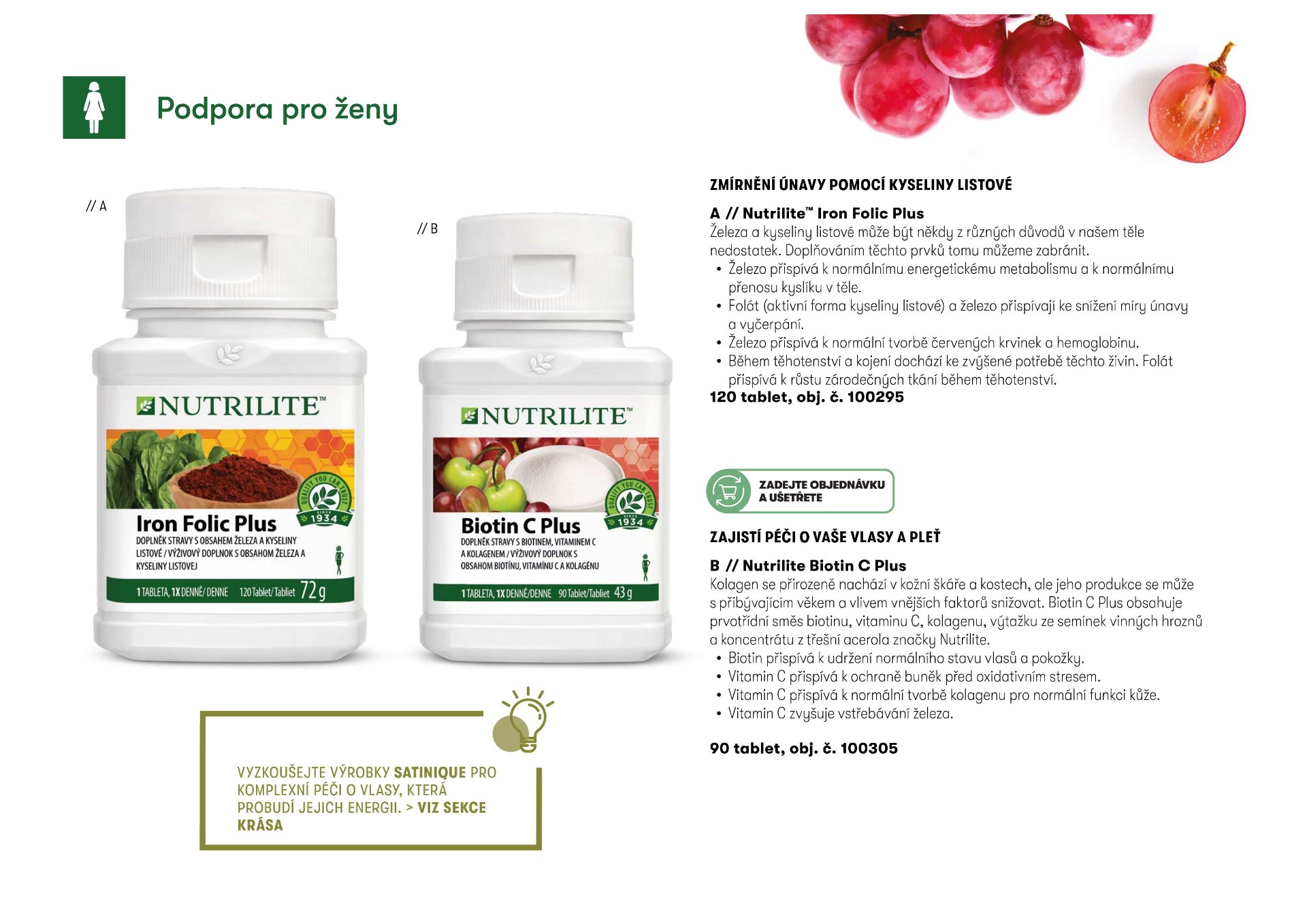 Obsahuje výtažek ze semen hroznového vína a Nutrilite koncentrát třešně acerola.